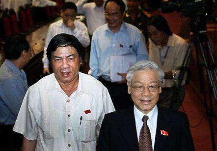 | Tổng bí thư Nguyễn Phú Trọng, Trưởng Ban chỉ đạo TƯ về phòng chống tham nhũng và Trưởng Ban Nội chính TƯ Nguyễn Bá Thanh. Ảnh: Lê Anh Dũng |