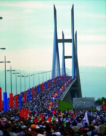 Ngày khánh thành cầu Mỹ Thuận năm 2000. Ảnh tư liệu của Ausaid