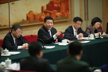 | Tổng bí thư Trung Quốc Tập Cận Bình trong buổi thảo luận với các đại biểu quốc hội từ Thượng Hải. Ảnh: THX |
