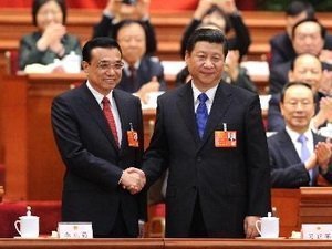 | Chủ tịch Trung Quốc Tập Cận Bình (phải) chúc mừng tân Thủ tướng Lý Khắc Cường. Ảnh: THX |