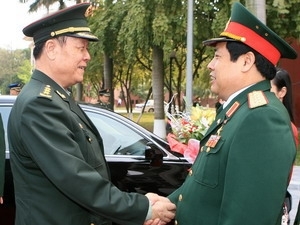 | Đại tướng Phùng Quang Thanh đón Thượng tướng Quách Bá Hùng. Ảnh: TTXVN |