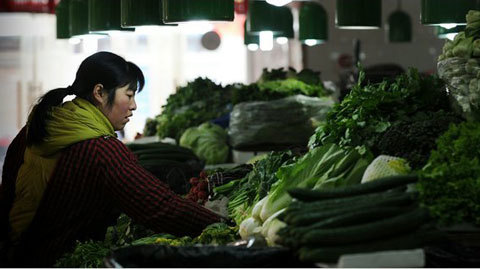 | Một người mua hàng tại chợ rau Bắc Kinh. Giá thực phẩm tại Trung Quốc đã tăng 11,7% chỉ riêng trong tháng 3. Ảnh: Getty Images |