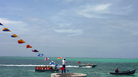 Tàu chuẩn bị vào đảo Đá Đông, quần đảo Trường Sa. Ảnh: Chu Thanh Vân