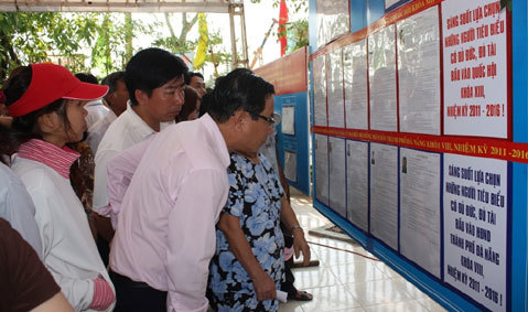 Cử tri Đà Nẵng xem kỹ danh sách ứng viên trước khi chọn người đại diện cho mình. Ảnh: Minh Quân |