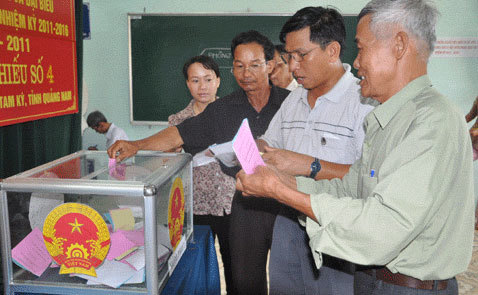 | Bỏ phiếu ở Quảng Nam. Ảnh: Vũ Trung |