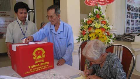 Nhiều cử tri trên 100 tuổi cũng đã nhiệt tình bỏ phiếu từ sáng sớm: cụ Kim Thị Vinh 105 tuổi ở xã Nguyệt Đức (Vĩnh Phúc), cụ Nguyễn Thị Chuyên 107 tuổi đi bỏ phiếu ở xã Tam Hồng, huyện Yên Lạc (Vĩnh Phúc).