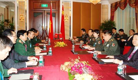 Bên lề Đối thoại Shangri-La chiều 3/6, Bộ trưởng Quốc phòng hai nước Việt Nam và Trung Quốc đã có cuộc tiếp xúc song phương. Cuộc gặp diễn ra trong bối cảnh hai nước đang có những căng thẳng do việc 3 tàu hải giám của Trung Quốc vi phạm vùng đặc quyền kinh tế và thềm lục địa của Việt Nam.