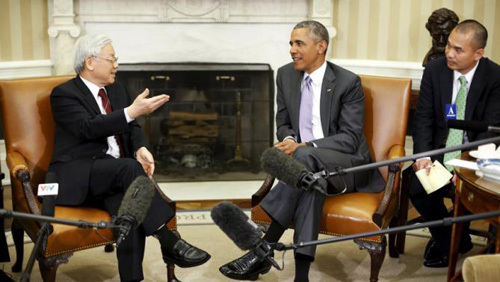 Tổng thống Obama và Tổng bí thư Nguyễn Phú Trọng đã hội đàm tại phòng Bầu Dục, Nhà Trắng.