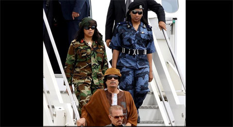 | Lãnh đạo Libya có đội vệ sĩ rất đặc biệt, toàn bộ là nữ giới, được đào tạo đặc biệt có thể sử dụng vũ khí cũng như võ thuật. Có những thông tin nói, điều kiện đặt ra để trở thành nữ vệ sĩ cho Gaddafi là vẫn còn trinh nguyên. |