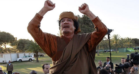 | Năm 2011, phong trào nổi dậy bùng phát ở phía đông Libya và Nato thiết lập vùng cấm bay đối với nước này, Gaddafi trước những người ủng hộ ở thủ đô Tripoli và tuyên bố "một cuộc chiến lâu dài, không giới hạn". |