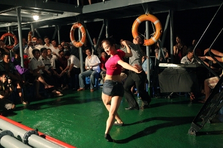 Bên cạnh hoạt động kể chuyện cười, việc đàn hát đương nhiên là cũng "hot" không kém. Do trên tầu có các thành viên của Band Dao Phay luôn cống hiến nhiệt tình với phương châm "Hát hết mình vì người hát", khán giả nhiều khi tức điên đành nhảy vào hát tranh. Thế là thành dàn đồng ca.