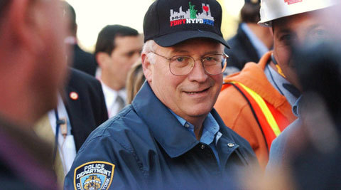 | Phó tổng thống Mỹ Dick Cheney (ở giữa) gặp gỡ các công nhân dọn dẹp tại Trung tâm Thương mại thế giới ngày 18/10/2001 |