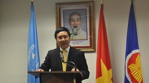 | Bộ trưởng Ngoại giao Phạm Bình Minh khai trương Lãnh sự quán Việt Nam tại New York. Ảnh: TTXVN |