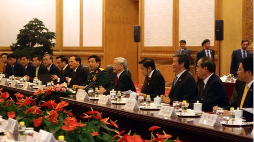 Hội đàm hẹp ở Bắc Kinh chiều 11/10, nhận định Biển Đông không phải là toàn cục quan hệ Việt-Trung, nhưng là vấn đề “hết sức nhạy cảm và phức tạp đối với cả hai Đảng, hai nước, vì liên quan đến chủ quyền quốc gia dân tộc”, hai nhà lãnh đạo cấp cao Việt - Trung khẳng định đây là vấn đề “hoàn toàn có thể giải quyết được” nếu xuất phát từ lợi ích nhân dân hai nước.