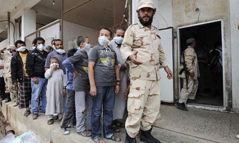 hàng chờ xem xác của Gaddafi tại Misrata. |