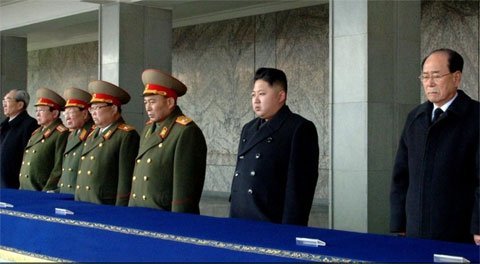 | Kim Jong-un và các quan chức, tướng lĩnh Triều Tiên trong lễ tang ông Kim Jong-il. Ảnh: BBC |