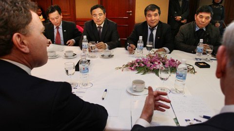 | TS John Snow làm việc với lãnh đạo Tập đoàn Vinaconex. Ảnh LAD |