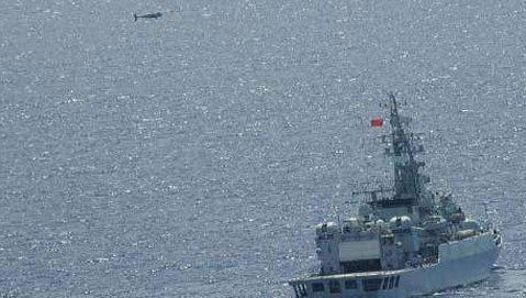 | Hình ảnh máy bay tuần tra của Nhật chụp được cho thấy một UAV nhỏ của Trung Quốc bay phía trên tàu của PLAN trong cuộc tập trận hải quân. Ảnh: SIGNAL Magazine |