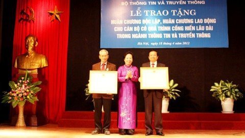 Sáng 18/4, cùng nhiều cán bộ lão thành ngành thông tin, truyền thông, nguyên Bộ trưởng Bộ TT-TT Lê Doãn Hợp và nguyên Thứ trưởng thường trực Bộ Bưu chính, Viễn thông Mai Liêm Trực được trao tặng Huân chương Độc lập.