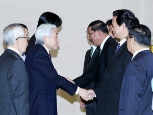 | Nhật Hoàng Akihito đón Thủ tướng Nguyễn Tấn Dũng và các trưởng đoàn. Ảnh: TTXVN |