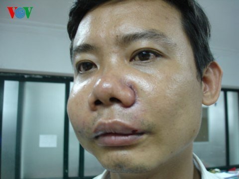 Nhà báo Hán Phi Long bị lực lượng cưỡng chế hành hung gây thương tích. Ảnh: VOV online