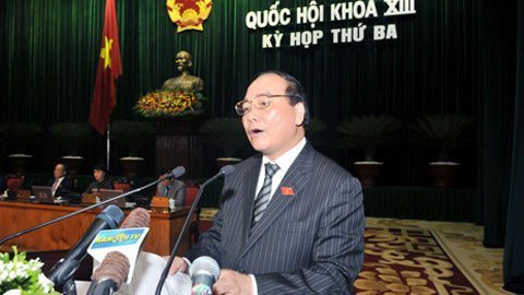 Thừa ủy quyền của Thủ tướng, Phó Thủ tướng Nguyễn Xuân Phúc thay mặt Chính phủ trình bày báo cáo bổ sung kết quả thực hiện nhiệm vụ năm 2011, tình hình thực hiện nhiệm vụ 4 tháng đầu năm và những giải pháp chủ yếu tập trung chỉ đạo, điều hành trong những tháng còn lại của năm 2012.