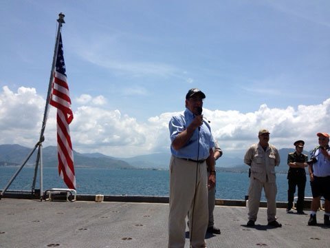 Vài hình ảnh của Bộ trưởng Panetta sáng nay ở cảng Cam Ranh: