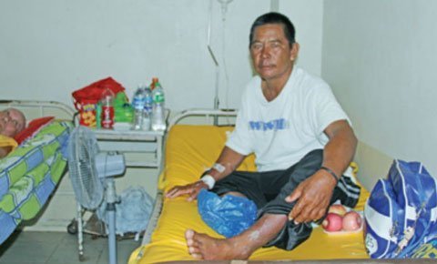 | Một trong những ngư dân được cứu, Herman Balmores, ở bệnh viện. Ảnh: Inquirer |