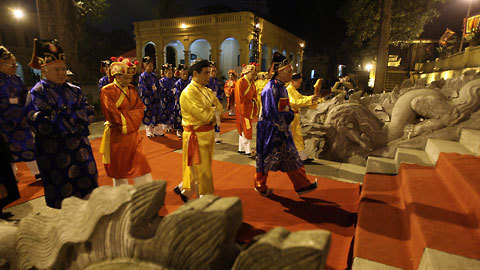 Vào lúc 19h tại khu vực Điện Kính Thiên, Chủ tịch nước Nguyễn Minh Triết thực hiện nghi thức chủ lễ Lễ dâng hương trang trọng, linh thiêng để cẩn cáo tiên tổ. Đại diện Bộ Ngoại giao, UBND TP Hà Nội, Trung ương Giáo hội Phật giáo Việt Nam cùng kiều bào đã tham gia buổi lễ.