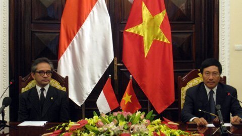 | Bộ trưởng Ngoại giao Việt Nam Phạm Bình Minh (phải) và Bộ trưởng Ngoại giao Indonesia Marty Natalegawa |
