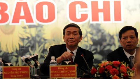 Ông Đinh Thế Huynh, tân Trưởng Ban Tuyên giáo Trung ương, tại cuộc họp báo bế mạc Đại hội Đảng XI, ngày 19/1. Ảnh: HLong |