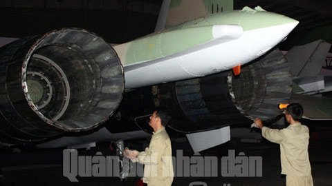 | Một chiếc Su-30 được chuẩn bị kỹ thuật trước ban bay |