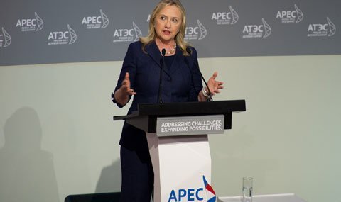 | Ngoại trưởng Mỹ Hillary Clinton tại hội nghị thượng đỉnh APEC. Ảnh: bellenews |