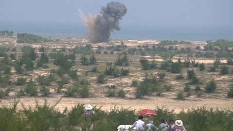 | Tiêu hủy hàng chục quả bom mìn ngay sau lể khởi động dự án. Ảnh: VT |