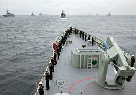 Đại tá Luke Charles-Jone (chỉ huy tàu HMAS Sydney 03) bắt tay đại tá hải quân Việt Nam Hà Xuân Xứ (đại diện phía Nam, Bộ tư lệnh hải quân Việt Nam).