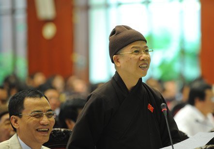 Hòa thượng Thích Thanh Quyết chất vấn Thủ tướng sáng 14/11. Ảnh: Minh Thăng |