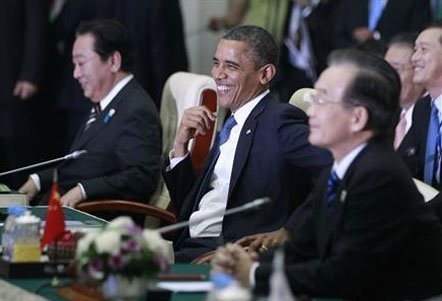 "Điều rất quan trọng với hai trong số các nền kinh tế lớn nhất thế giới là, chúng ta phải làm việc để tạo lập những quy tắc rõ ràng trong con đường quốc tế cho thương mại và đầu tư", Tổng thống Mỹ nói với Thủ tướng Trung Quốc Ôn Gia Bảo trước khi bước vào hội nghị thượng đỉnh Đông Á ở Phnom Penh, Campuchia.