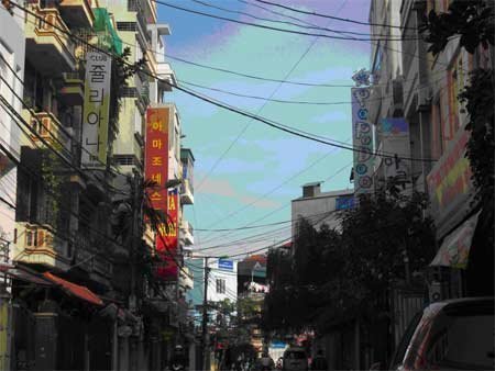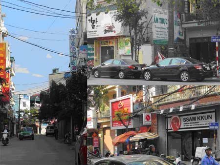 Người đi đường có thể dễ dàng nhận thấy vô số các cửa hàng treo biển song ngữ. Tuy nhiên điểm đặc biệt của các biển hiệu này là đa phần chữ Hàn được trình bày rất bắt mắt và chiếm nhiều diện tích, trong khi chữ Việt Nam thì lại khá nhỏ và rất khó nhìn. Đó quả là một điều kì lạ và dễ gây nhầm lẫn bởi không hiểu thực ra đây là Hàn Quốc hay Việt Nam.
