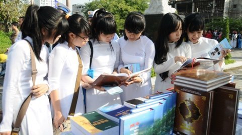 | Nhiều bạn trẻ đến triển lãm các tư liệu mới nhất liên quan đến chủ quyền của VN đối với quần đảo Hoàng Sa. Ảnh: Đăng Nam/ TTO |