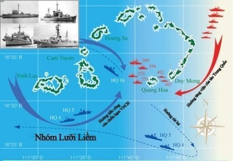 | Bản đồ Hải chiến Hoàng Sa 1974. Các chiến hạm VNCH (ảnh nhỏ) - Đồ họa: Hồng Sơn |