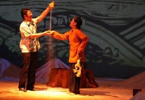 | Một cảnh trong vở kịch Âm binh. Ảnh: Họa sĩ Nhím/ SGTT |