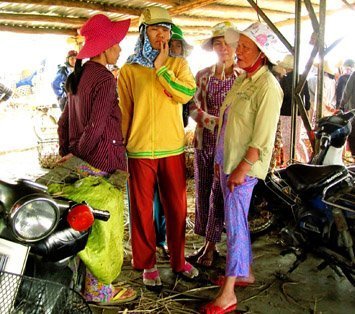 Tại chợ này chúng tôi làm quen với chị Nguyễn Thị Thảo, 48 tuổi, quê ở Quế Sơn. Chị cho biết: "Làm cái nghề này, tui phải dậy từ 4h sáng, cơm nước xong là xuất phát ngay để có mặt tại đây lúc 6h, đó là thời điểm bước vào phiên chợ. Cái nghề có phần vất vả là đi sớm về tối, không ít nỗi nhọc nhằn, nhưng cũng có đồng thu nhập lo cho gia đình".