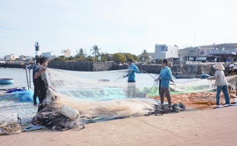 Ngư dân thu lưới về sau một chuyến ra khơi |