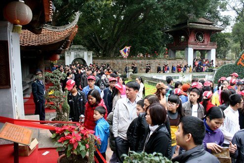 Chợt nhớ chỉ chừng hơn 10 năm trước, khách thăm Văn Miếu còn thưa thớt lắm. Hình như "tục" sờ đầu rùa, dí tiền vào bia Tiến sỹ chưa xuất hiện. Ngày ấy không có nhiều người khấn vái ở Văn Miếu như Bia Bà, Đền Ghềnh hay Phủ Tây Hồ. Trước ban thờ Khổng Tử, Mạnh Tử..., vẫn còn có khoảng trống để đọc tên cho biết tượng này là "cụ" nào. Giờ có chỗ đứng chắp tay đã khó. Chịu, có khi người ta chẳng biết mình đang vái ai.