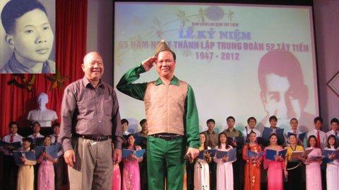 Đ/c Trần Quang Thường nguyên trung đoàn phó trung đoàn Tây tiến (chụp 1945-  góc phải)  vừa tròn 95 tuổi tặng bức ảnh kỷ niêm thời tây tiến cho gia đình đ/c Đinh Công Niết (một nhà lang theo cách mạng lập nhiều chiến công hiển hách.