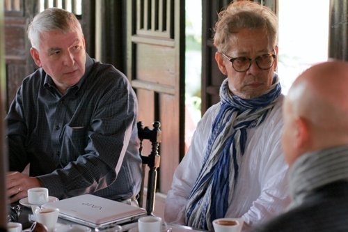 Khoảng 2 tiếng, tất nhiên phải thông qua phiên dịch. Mặc dù, trước đó, chúng tôi chỉ định gặp nhau khoảng 30 phút. Tôi không có nhiều thời gian ở Hà Nội.