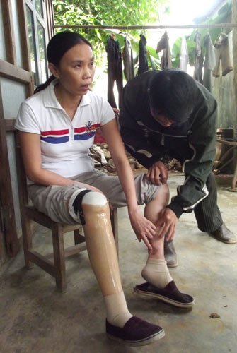 | Chân phải của chị đã bị mìn cướp đi, chân trái cũng bị ảnh hưởng, Ảnh Hoàng Hường |