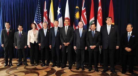 | Lãnh đạo các nước tham gia TPP gặp nhau ở hội nghị APEC Yokohama, Nhật (14-11-2010) |