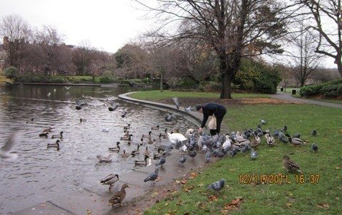 Đó là Công viên trung tâm ở Dublin (Ireland), nơi đàn thiên nga, và lũ chim chóc hoang dã, cứ thấy bóng người là bơi vào bờ, dịu dàng và nũng nịu, hoặc đỗ xuống lích chích để đợi được ăn. Tựa như con người lại chính là bến đỗ bình yên, tin cậy của chúng.