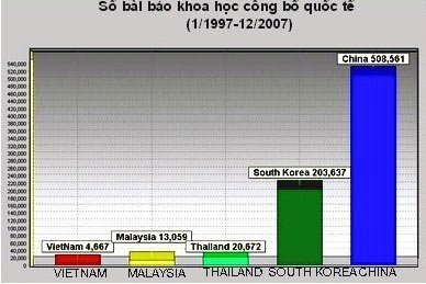 Tổng số bài báo quốc tế của Việt Nam là 403 bài trong khi số bài báo quốc tế của chỉ của riêng Trường ĐH Chulalongkorn là 416 bài và ĐH Mahidol (Thái Lan) là 465 bài. Tức số bài báo quốc tế chỉ riêng của một trường ĐH Chulalongkorn hay Mahidol của Thái Lan đã nhiều hơn hẳn so với hơn 400 cơ sở giáo dục ĐH Việt Nam cộng lại!